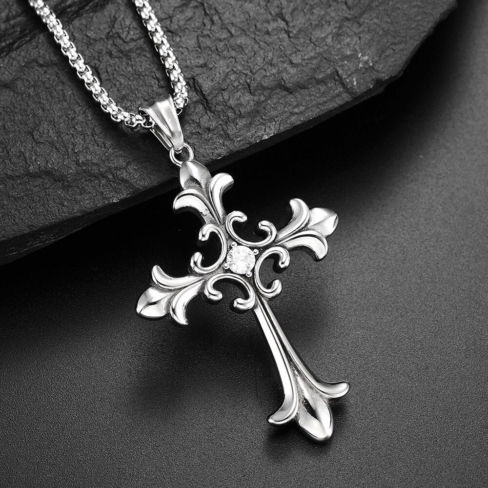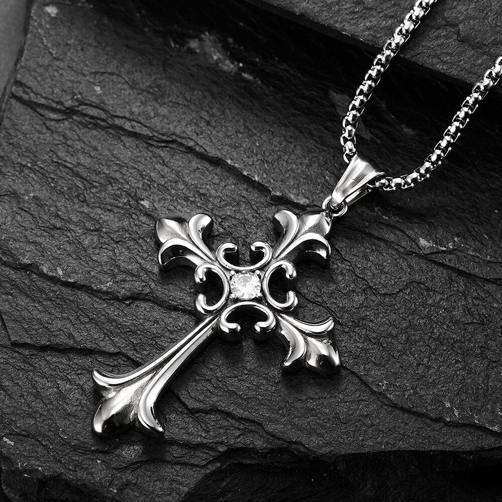 Add a modern-day edge to your style with this CZ Stone Cross Necklace. This unique, stainless steel pendant is crafted in the traditional cross shape, complete with potent CZ stones for maximum sparkle and shine. The polished finish reflects light to be sure that all eyes are on you wherever you go. Whether you're treating yourself or looking for a special gift for him, this Cross Pendant Necklace makes an unforgettable statement. Be creative, express yourself - let everyone know who you are and show them what you stand for. Explore new styles while embracing your individual identity with this rockin' necklace!