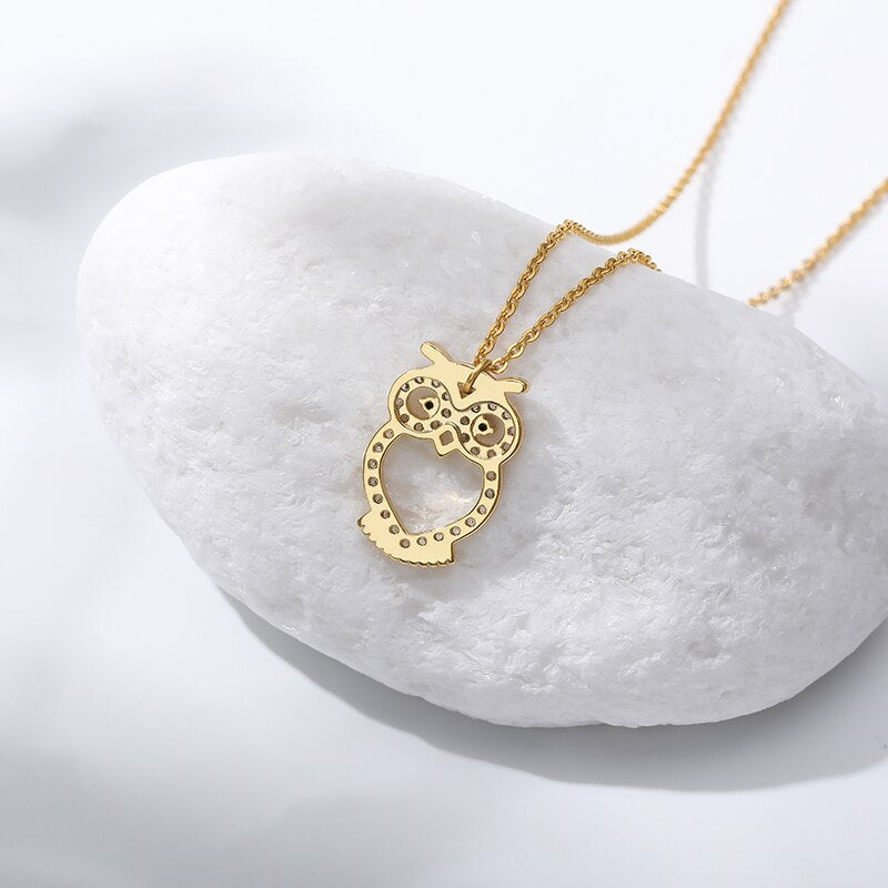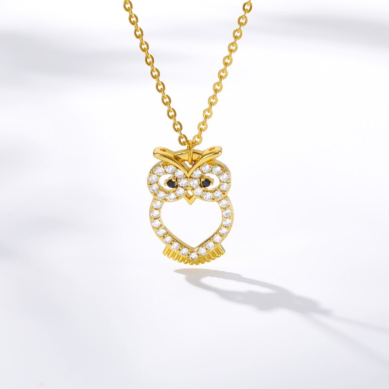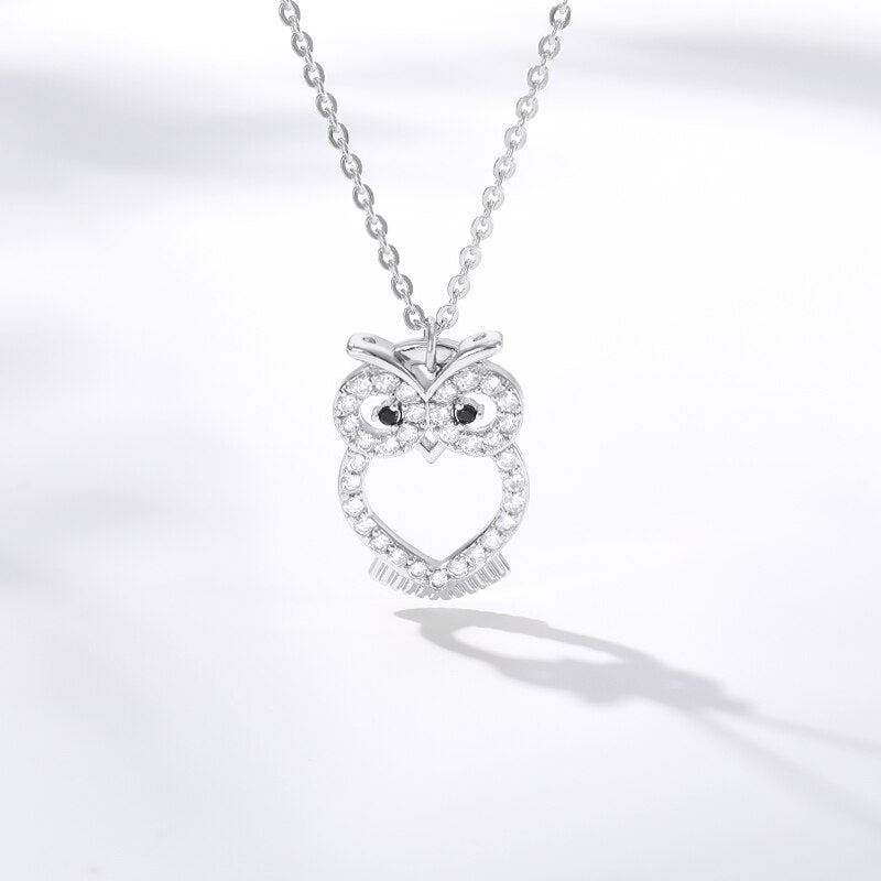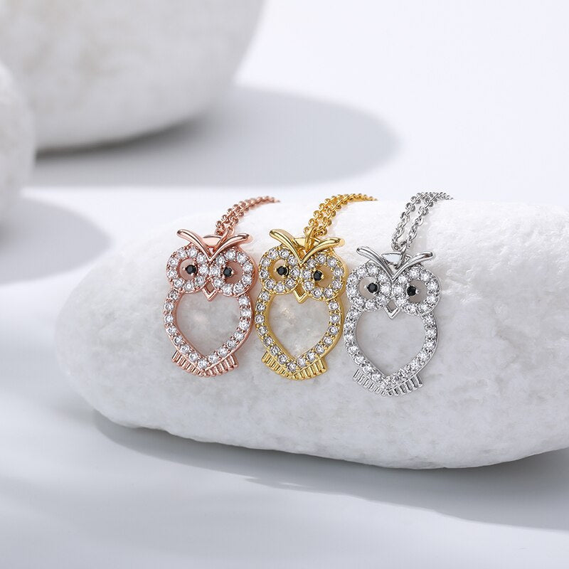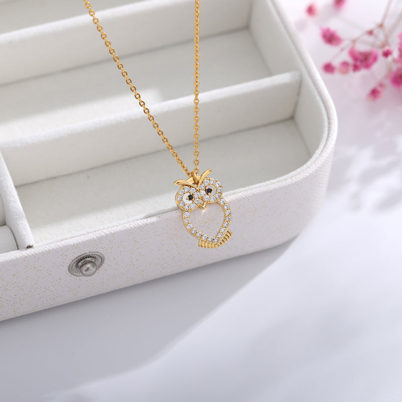 Delicate Crystal Night Owl Chain Necklaces For