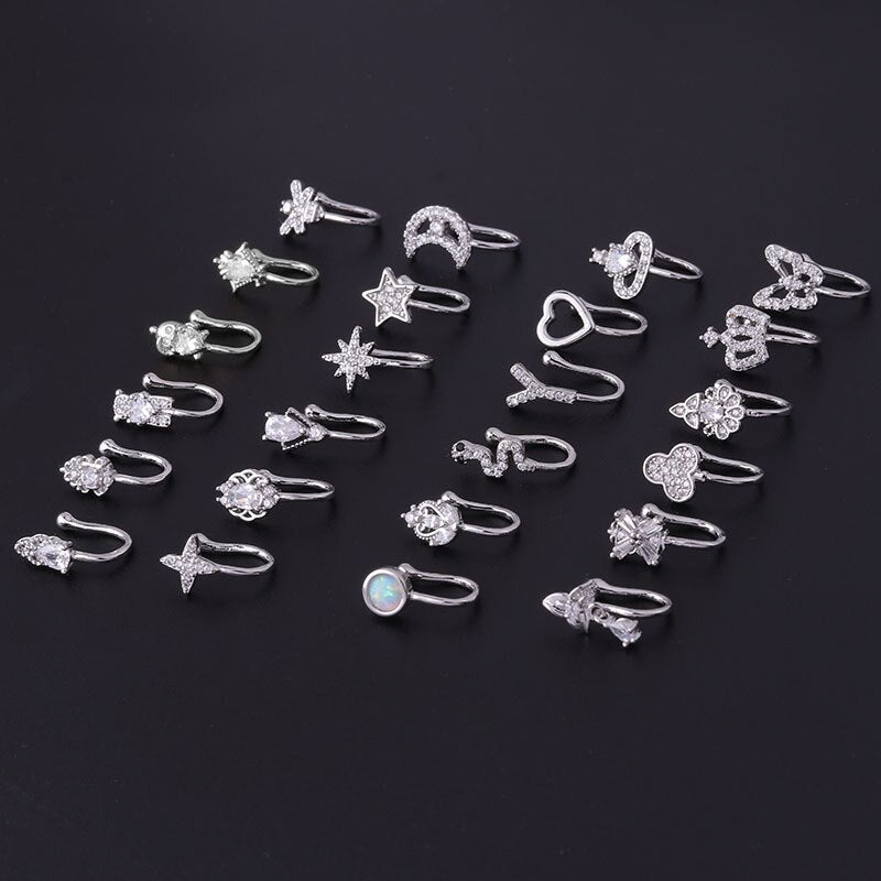 Introducing our new nose rings and studs fake Piercing! This must-have body jewelry is perfect for adding a touch of edge to any look. Our nose cuff is made of high quality stainless steel and comes in silver and gold. It's also extremely easy to put on and take off, so you can change up your look anytime you want. Whether you're looking to add a little bit of attitude to your outfit or simply want to try out a new style, our nose rings and studs fake Piercing is the perfect accessory. So don't wait any longer, order your nose cuff today!