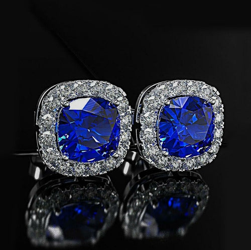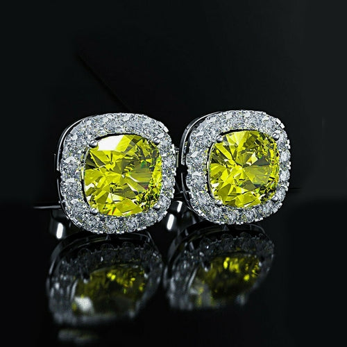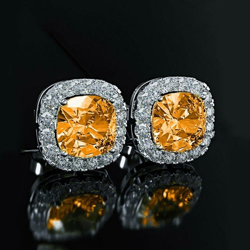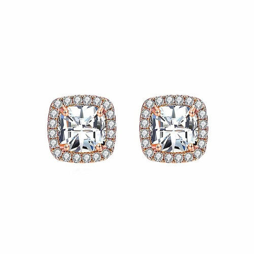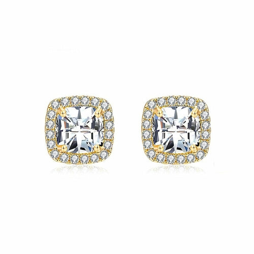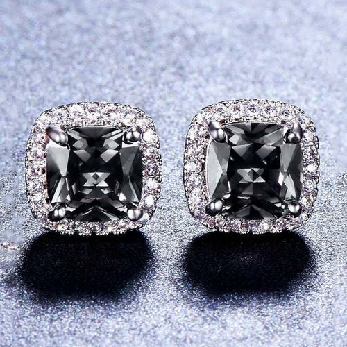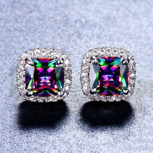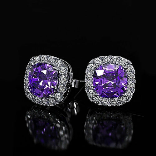 Iridescent Amethyst Gemstone Princess Halo Cut Stud Earring With